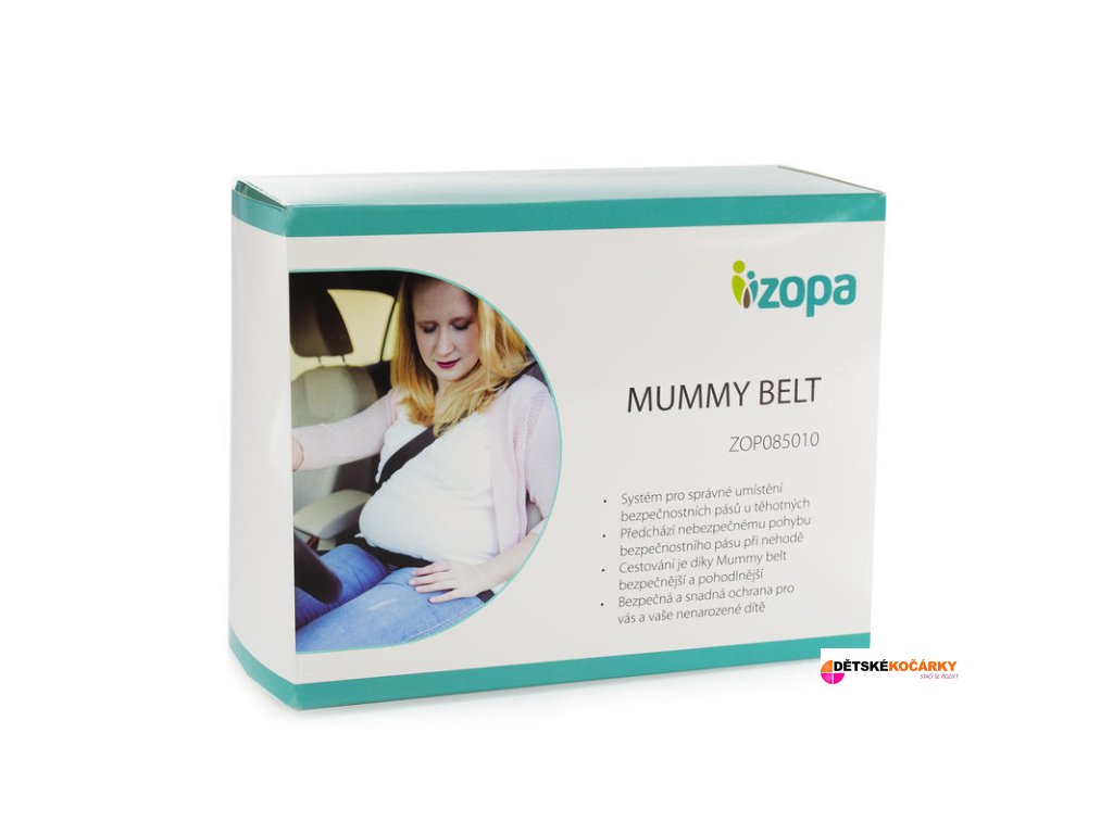 Těhotenský pás do auta ZOPA Mummy belt je zde pro zajištění správného vedení bezpečnostních pásů vozidla u těhotných žen. Prudké brždění nebo náraz představuje obrovské riziko pro dospělého člověka. Toto riziko se ještě násobí v případě nenarozeného dítěte. Pásy, které vedou nesprávně přes bříško těhotné, jsou velmi nebezpečné. Mummy Belt zaručí správné vedení pásů ,,mimo bříško“, což podstatně snižuje nebezpečí v případě nárazu a navíc je s ním cestování pohodlnější.