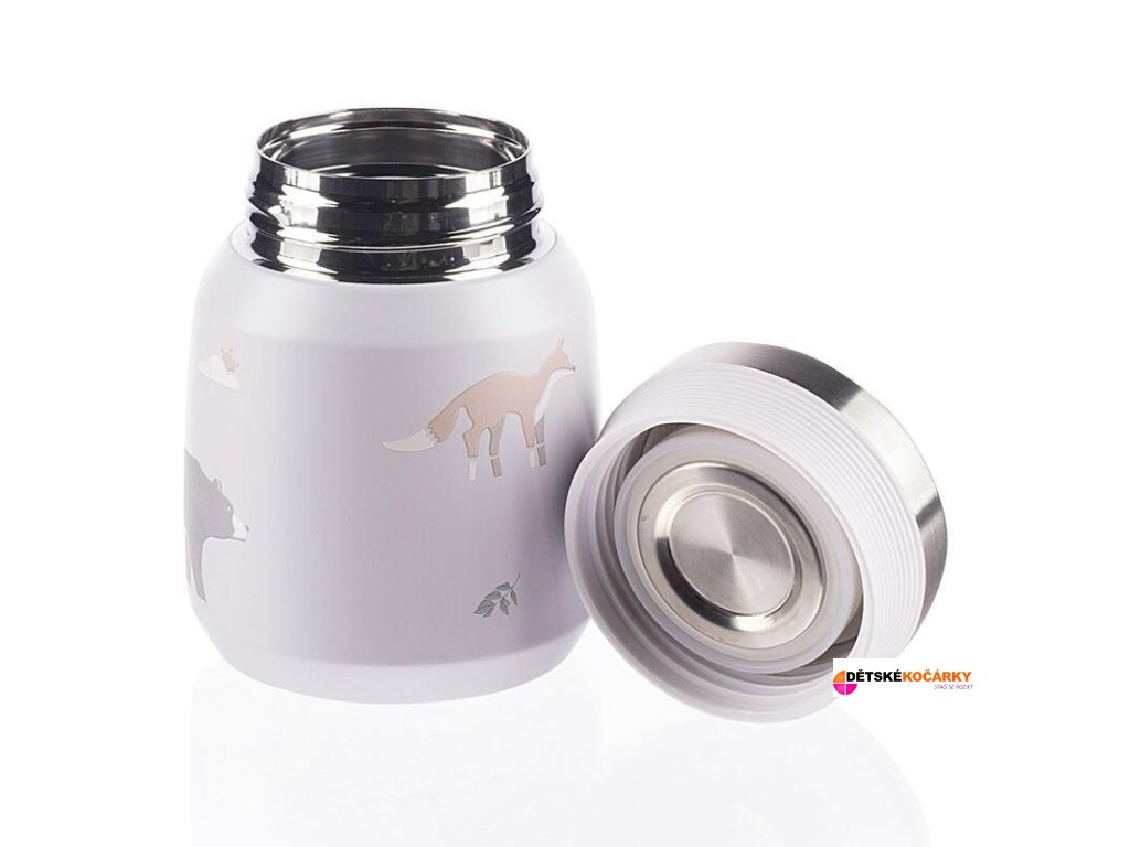 Nerezový materiál oproti plastovým krabičkám neabsorbuje vůně a je odolný vůči skvrnám. Navíc tekutina při přenášení nevyteče, tak jako to bývá u plastových obědových boxů, které dobře netěsní. Široký otvor usnadňuje dojídání, plnění či umývání termosky. Termoska udrží ovoce a zeleninu déle čerstvé. Používáním termosek na tekutiny pomáháte redukovat spotřebu plastů. Termosku myjte v ruce, není vhodná do myčky nádobí.