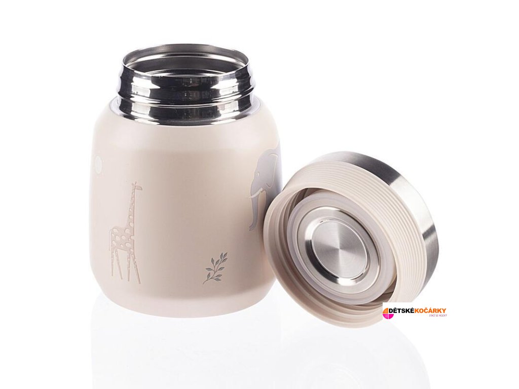 Nerezový materiál oproti plastovým krabičkám neabsorbuje vůně a je odolný vůči skvrnám. Navíc tekutina při přenášení nevyteče, tak jako to bývá u plastových obědových boxů, které dobře netěsní. Široký otvor usnadňuje dojídání, plnění či umývání termosky. Termoska udrží ovoce a zeleninu déle čerstvé. Používáním termosek na tekutiny pomáháte redukovat spotřebu plastů. Termosku myjte v ruce, není vhodná do myčky nádobí.