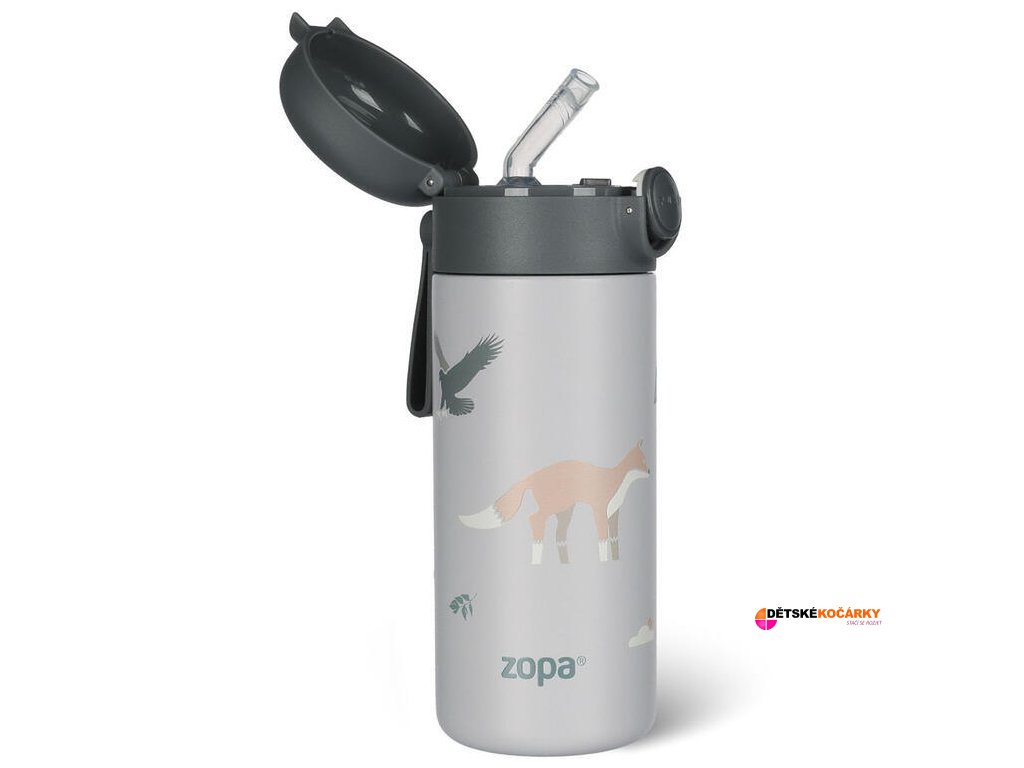 Designová termoska ZOPA s veselými motivy o objemu 350 ml, vybavená spolehlivým vzduchotěsným uzávěrem a dvojitou vrstvou kvalitní nerezové oceli, uchovává horké nápoje teplé až 12 hodin a chladné až 24 hodin. Do školky, školy, na hřiště i na výlety, termosku může mít vaše dítko stále při ruce. V parných dnech si může vychutnat osvěžující studenou vodu či oblíbenou ovocnou šťávu a v těch chladnějších ho zahřeje teplý lahodný čaj. Silikonové poutko umožňuje snadný přenos i úchop malých dětských rukou.