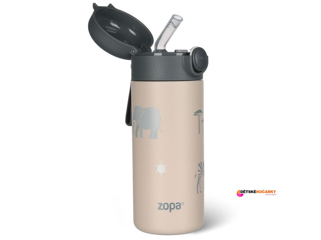 Termoska na tekutiny s brčkem a silikonovým držákem ZOPA 350 ml 2026, safari