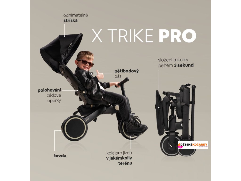 Hledáte hravější alternativu ke kočárku? ZOPA X Trike Pro je multifunkční tříkolka, která roste s vaším dítětem od 10 měsíců až do 4 let. Pomáhá rozvíjet rovnováhu a koordinaci pro budoucí jízdu na odrážedle i kole. Nechte svého malého průzkumníka objevovat svět na třech kolech, získávat jistotu v pohybu a osvojit si základy samostatné jízdy. Komfort a ochrana na každé jízdě X Trike Pro myslí na vše! Sedátko tříkolky je měkce polstrované a ergonomicky tvarované. Pro nejmenší jezdce je součástí i podnožka, která zajišťuje pohodlí i při delších vyjížďkách. Opěradlo lze navíc sklopit pro chvíle odpočinku. O bezpečnost se postarají výškově nastavitelné 5-ti bodové pásy, ochranná hrazda a brzda na zadních kolech. A když slunce pálí, stříška poskytne spolehlivý stín, takže si dítě může užívat jízdu naplno. Život s dětmi je plný nečekaných dobrodružství, a tříkolka X Trike Pro vám bude vždy po boku.