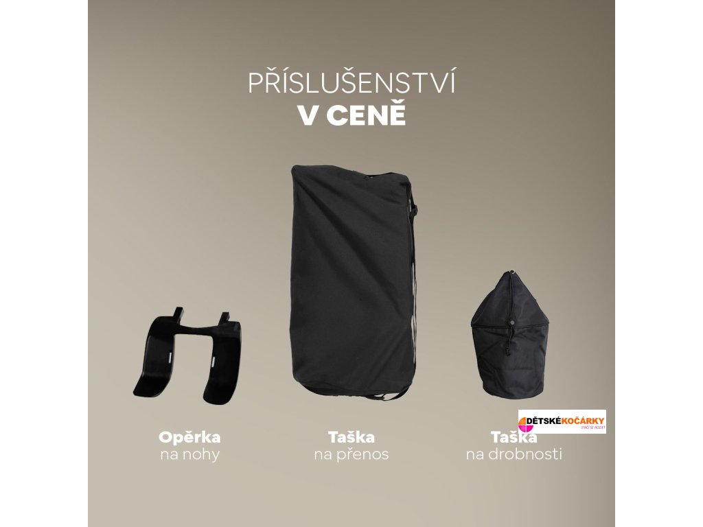 - odnímatelná zádová opěrka, podnožka, pedály, vodicí tyč a stříška