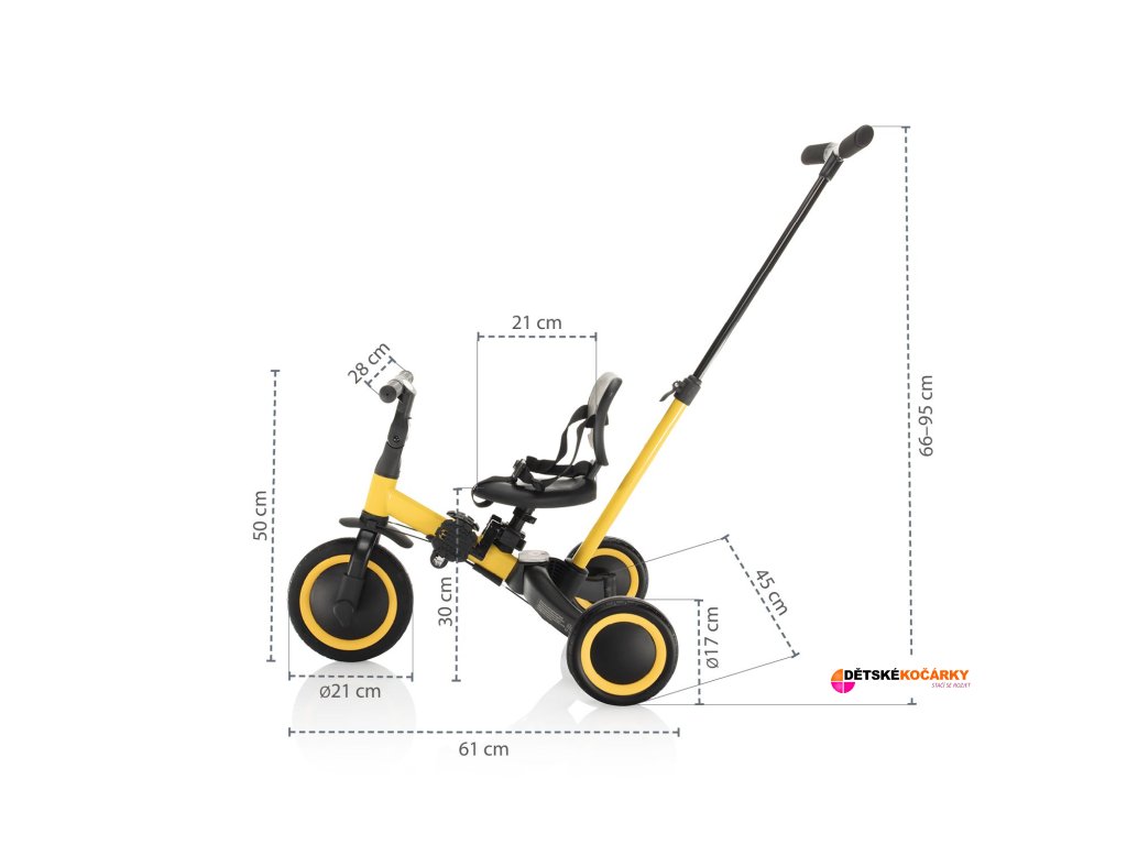 Tříkolka ZOPA Razor 3v1 s možností volby používání s vodicí tyčí či bez vodící tyče je určená pro děti od 1,5 roku jako tříkolka a až do věku 5 let jako kolo. Variantu s vodící tyčí oceníte na delších výletech, když dítěti dojdou síly samostatně šlapat. Nezáleží na tom, kterou variantu tříkolky ZOPA Razor 3v1 zrovna používáte, její snadné složení z ní dělá skvělého společníka na cestování, a tak jí vždy můžete vzít s sebou na rodinný výlet, dovolenou nebo návštěvu.