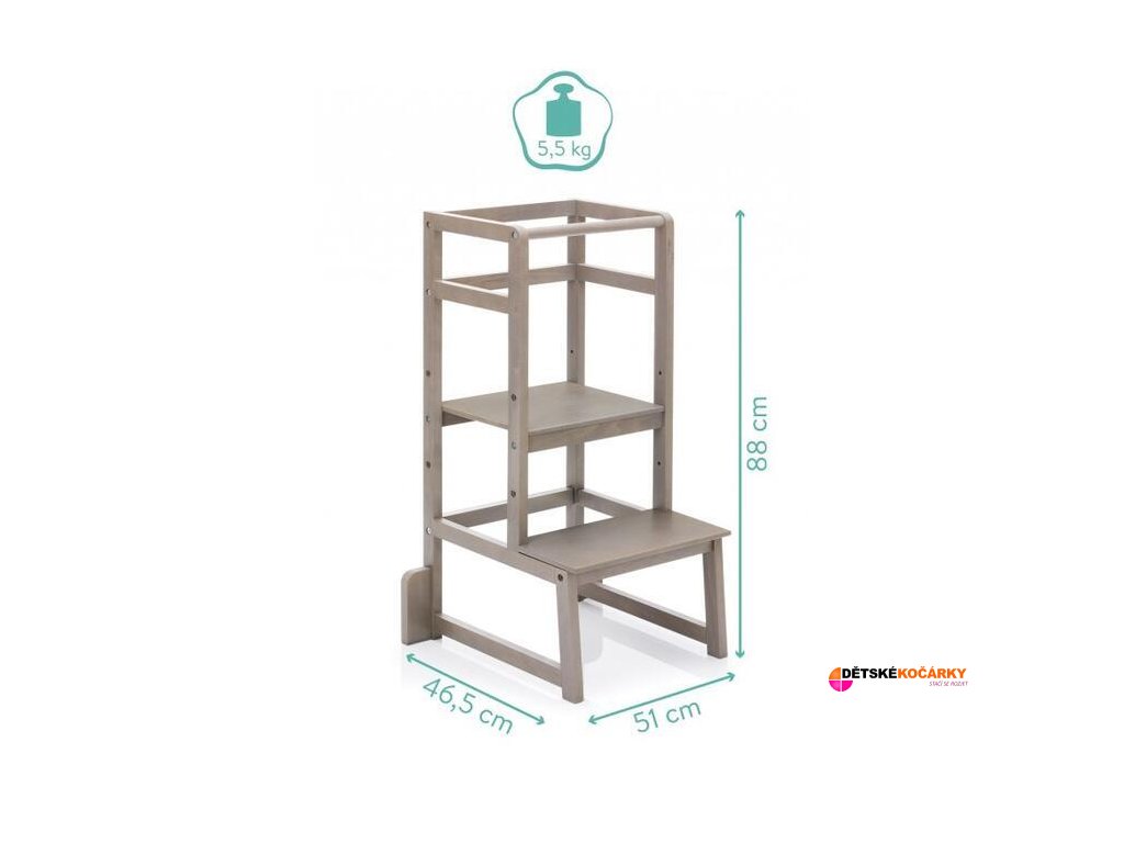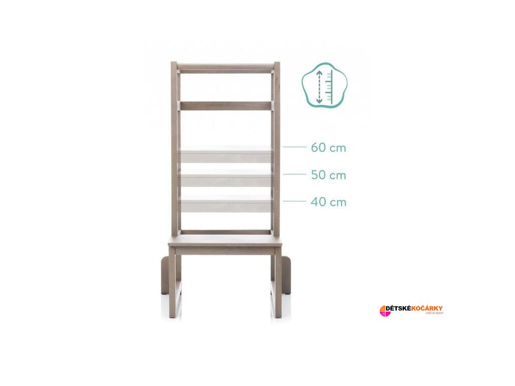 Učicí věž FILLIKID Vista je nejen krásná na pohled a svým moderním, ale jednoduchým designem se perfektně hodí do každého bytu, ale je také extrémně stabilní a svými bočními podpěrami a pevnou konstrukcí nabízí vynikající ochranu proti převrácení. A protože naši nejmenší rostou rychle, lze výšku stojanu dokonale přizpůsobit aktuální výšce dítěte. Po zvládnutí cesty nahoru slouží kruhová tyč k přidržení a samozřejmě jako ochrana proti vypadnutí. Vaše sluníčko tak může pomoci všude a ať už jde o vaření, pečení nebo dokonce čištění zubů, tato věž je optimálním pomocníkem, když se nožičky zdají být příliš krátké. Hraní a učení v úrovni očí s rodiči nebo velkými sourozenci pomáhá vašemu dítěti velmi rychle zažít sociální interakce a podporuje jejich dovednosti a pomáhá posilovat jejich vzájemné pouto. A protože FILLIKID přikládá velký význam udržitelné výrobě a co nejkratším dopravním trasám, je výuková věž vyrobena ze 100% evropského dřeva z EU. Používají se samozřejmě pouze laky vyrobené a certifikované v Německu.