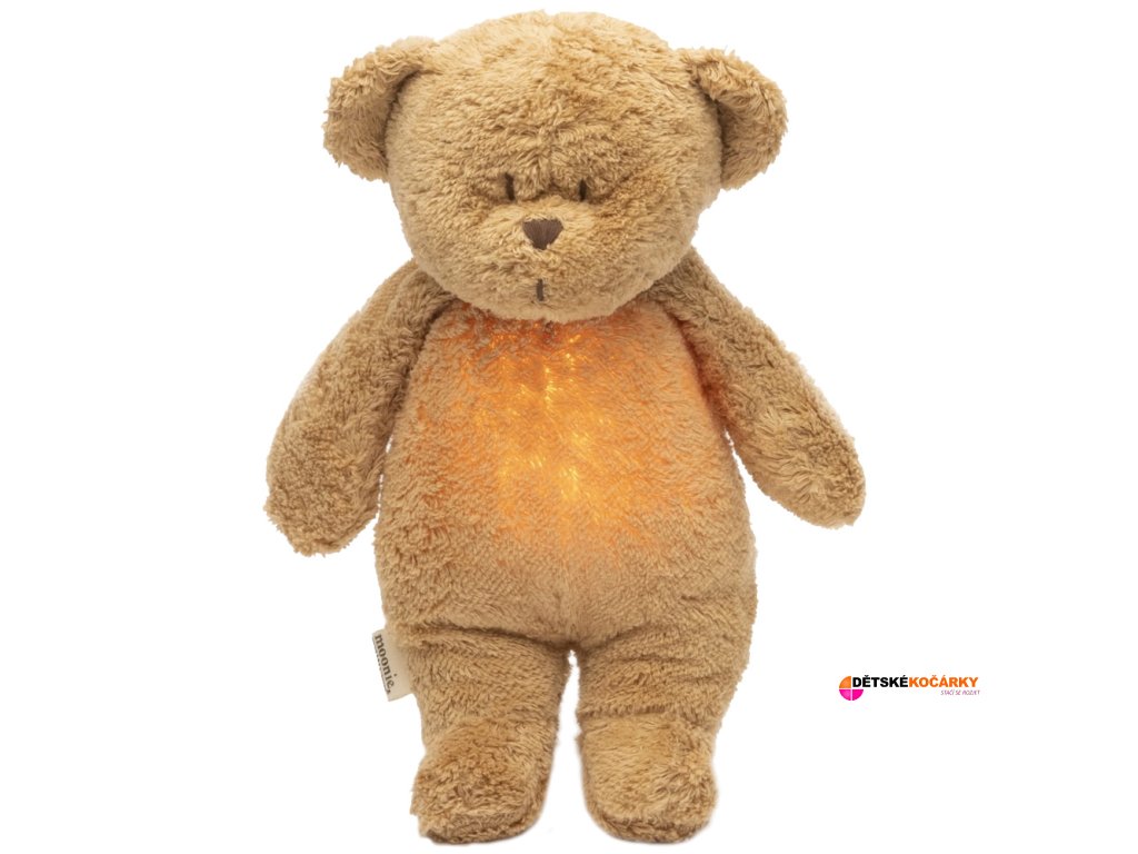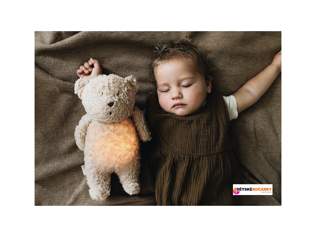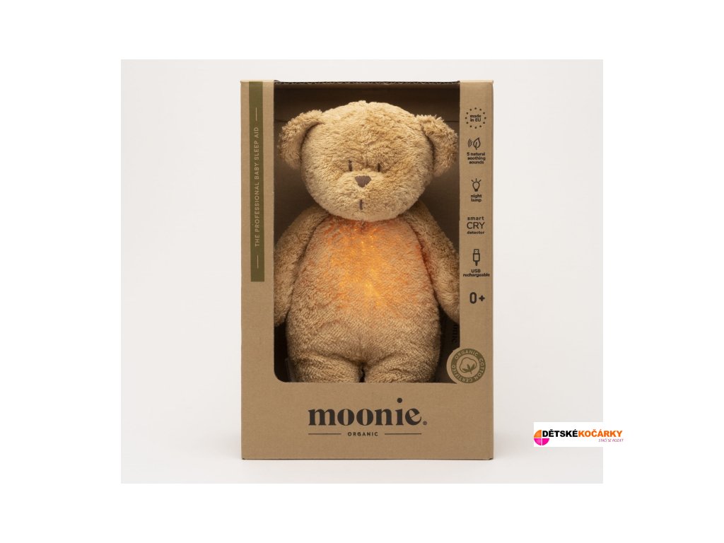 Usínáček MOONIE v podobě roztomilého medvídka s nočním světlem a relaxačními zvuky pomáhá miminku uklidnit se a snáze usnout. Uklidňující zvuky připomínají dítěti prostředí v děloze maminky před jeho narozením. Usínáček nabízí pět přírodních relaxačních zvuků (tlukot srdce, vítr, lesní potok, mořské vlny, déšť), kalimba ukolébavku, dvě klasické ukolébavky a umožňuje nahrání vlastního hlasu. Bříško zajíčka svítí a slouží jako noční světlo s výběrem sedmi barev svícení. Jemné světlo pomáhá dítěti cítit se v postýlce bezpečně. Světlo je možné zapnout i bez zvuků. Při zapnuté funkci Shake světlo zapnete zatřesením hračkou. Zajíček se při svícení nijak nezahřívá a je pro dítě zcela bezpečný.