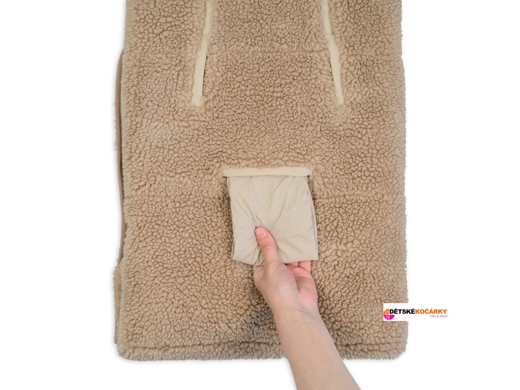 - otvorem na zip ve spodní části lze protáhnout bezpečnostní pásy autosedačky