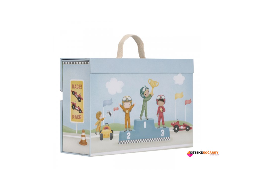 Nastartujte motory, závod začíná! Tato závodní dráha LITTLE DUTCH ukrytá v praktickém kufříku se během chvilky promění v kompletní autodráhu plnou akce. Sada obsahuje vše, co malí závodníci potřebují ke vzrušujícímu klání a skládá se z kartonových dílů, které do sebe snadno zapadají jako puzzle. Po skončení závodu lze všechny součásti jednoduše uložit zpět do kufříku.