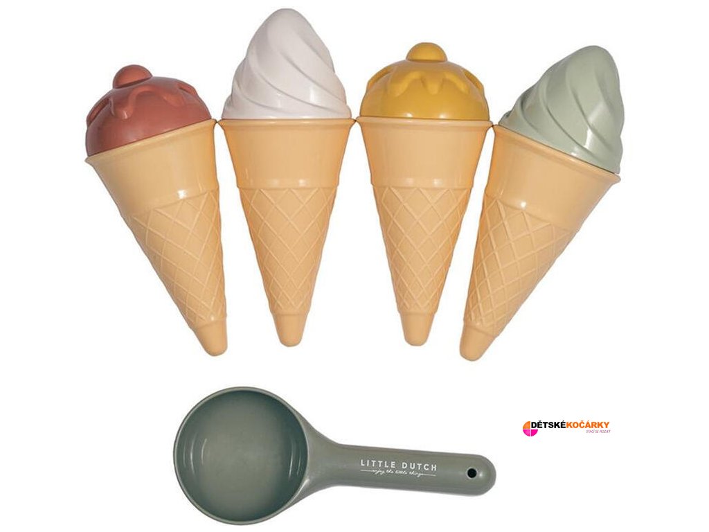 Zmrzlina patří k létu a s touto roztomilou sadou z designové kolekce LITTLE DUTCH Fresh Green si ji vaše děti vyrobí i z písku. Sadu čtyři kornouty, naběračka na zmrzlinu a čtyři formičky ve tvaru zmrzliny.